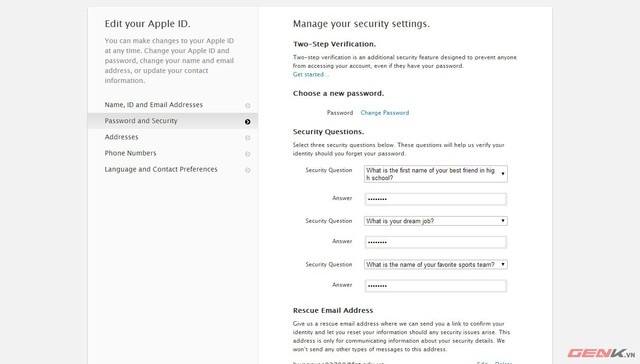 Bước 2: Chọn "Password and Security" ở mục bên trái, chọn sử dụng phương thức bảo mật 2 lớp, nhập số điện thoại dùng để xác thực.