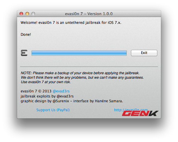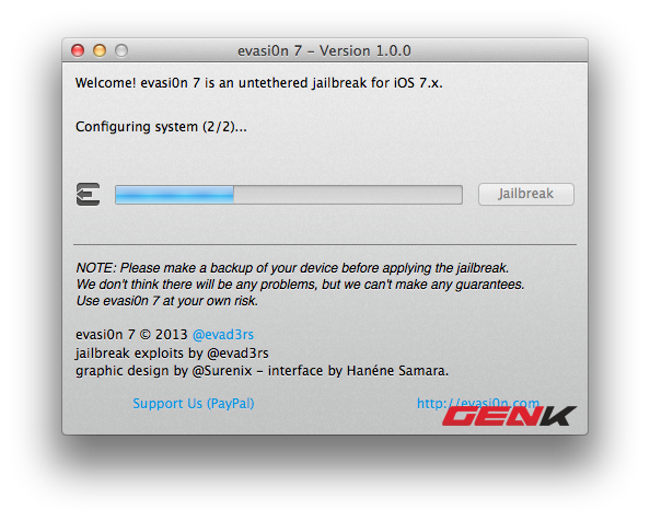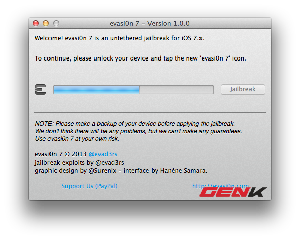 - Nên tắt tất cả các tác vụ khác đang chạy, chỉ để evasi0n chạy cho tới khi hoàn thành.