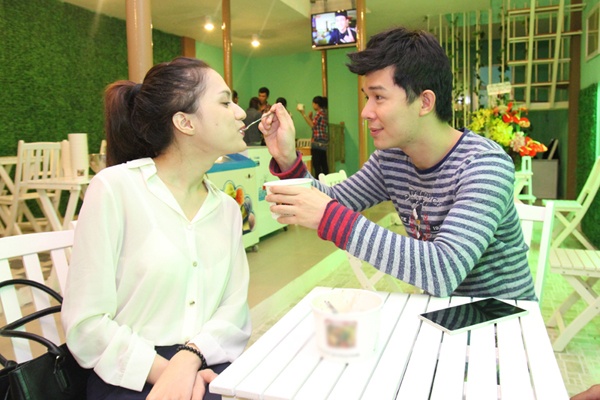 | Anh chàng chăm sóc Hương Giang rất tận tình. |