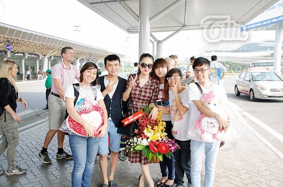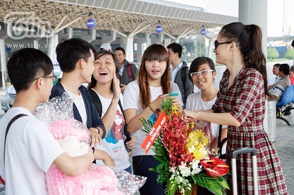 | Mặc dù chuyến bay từ khá sớm nhưng Hương Giang Idol đã khá bất ngờ khi các fan đã đến tận sân bay Tân Sơn Nhất để đón cô và gửi đến người đẹp những món quà rất ý nghĩa. |