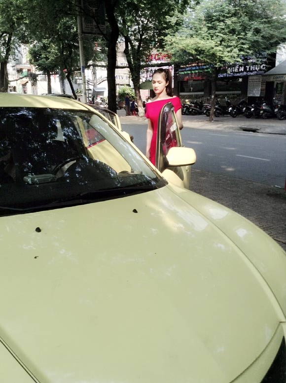 Hương Giang tự lái xe ra về, được biết đây là món quà sau thời gian đi hát cô tự thưởng cho bản thân. |