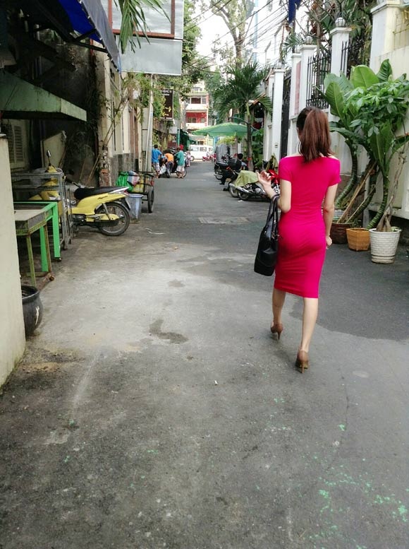 Cô nàng diện trang phục bó sát khoe vòng ba nóng bỏng. |