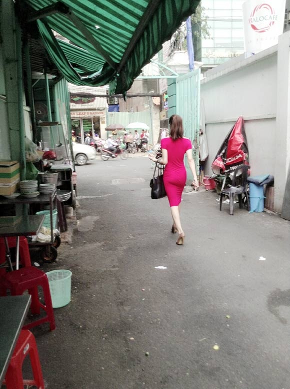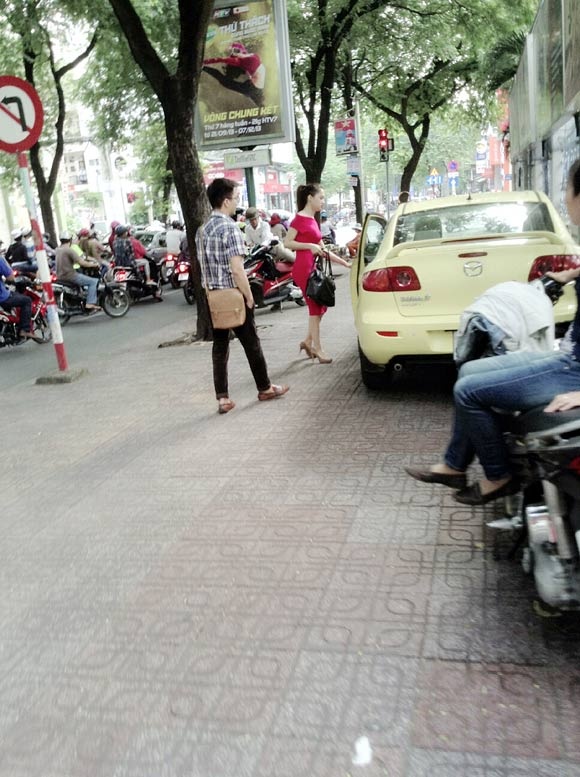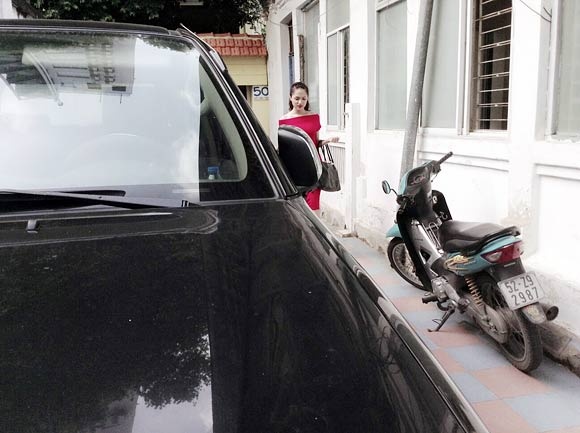 Dường như có chuyện gấp nên Hương Giang khá vội vã đi lấy xe. |