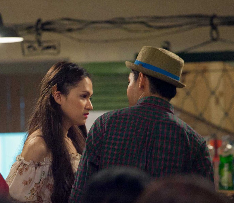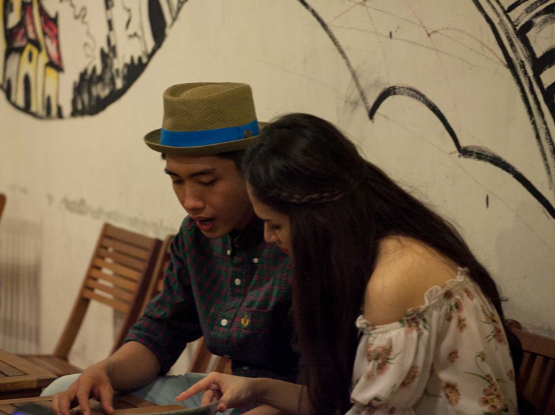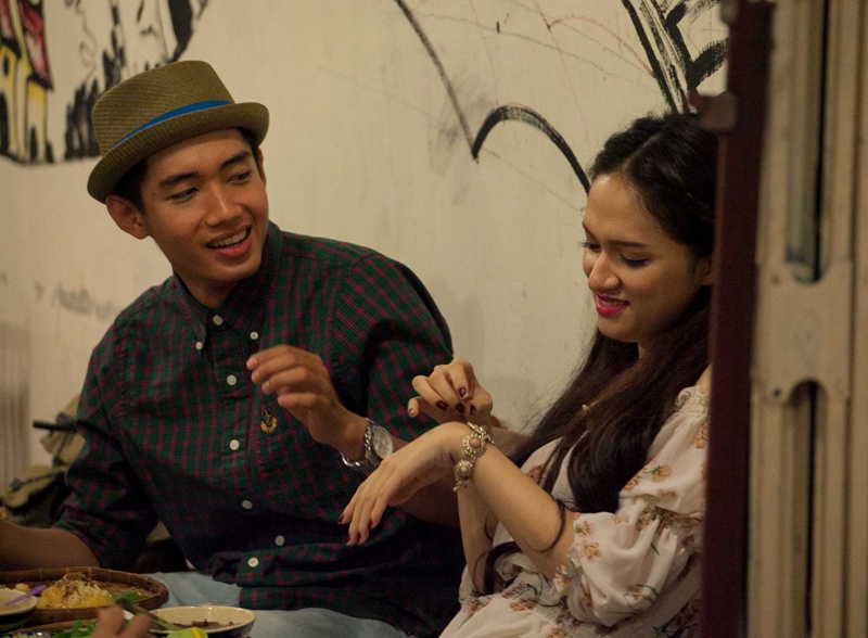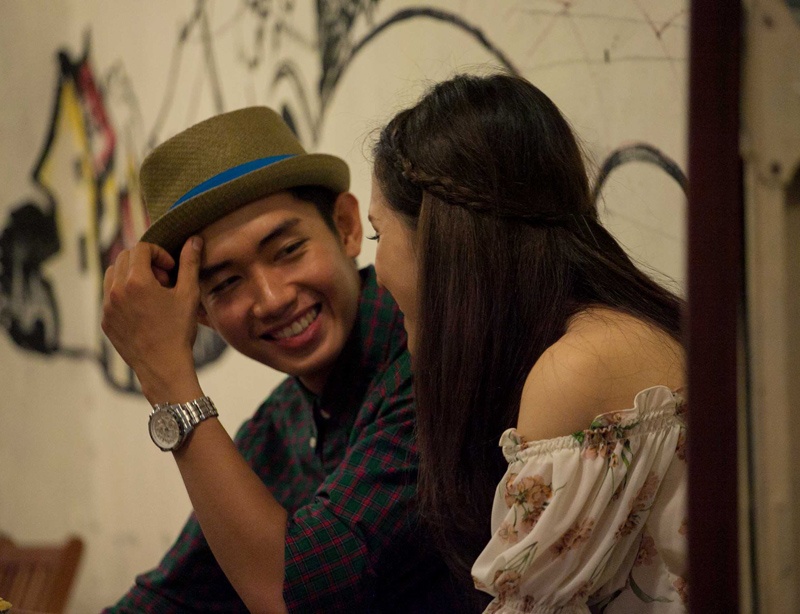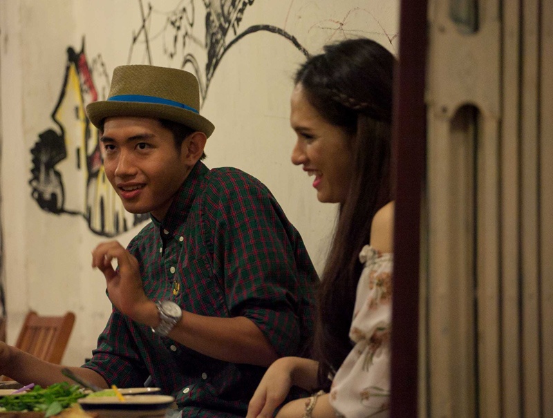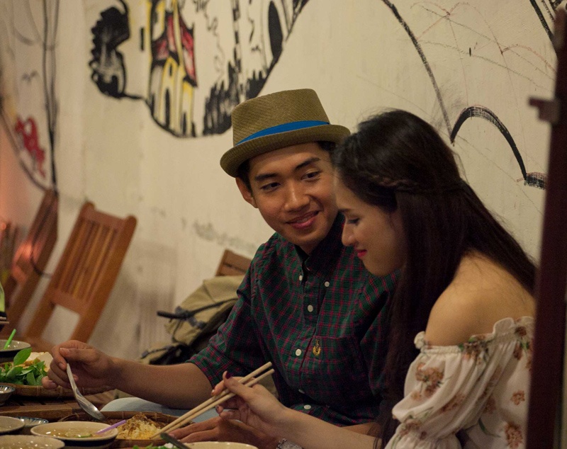 | Quang Đăng chăm sóc Hương Giang rất chu đáo khi vào quán ăn. |