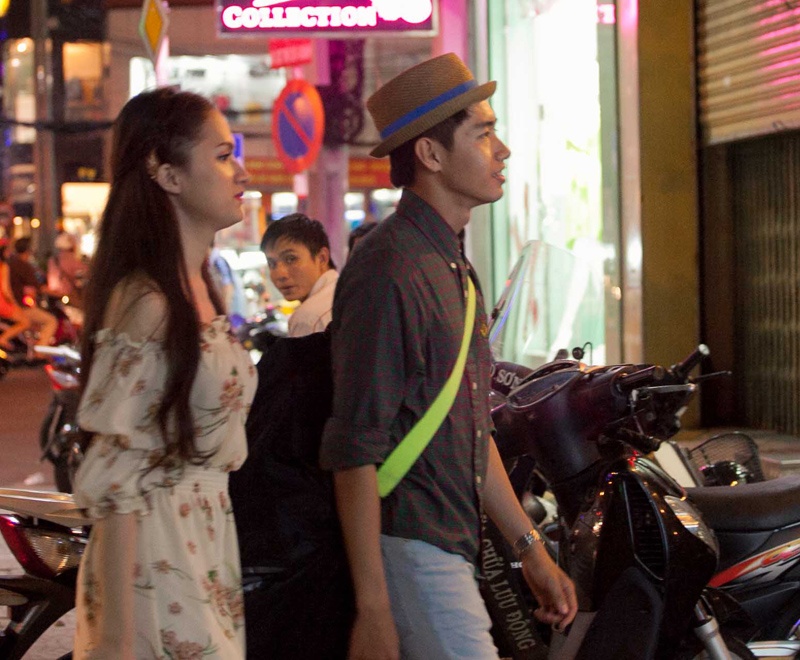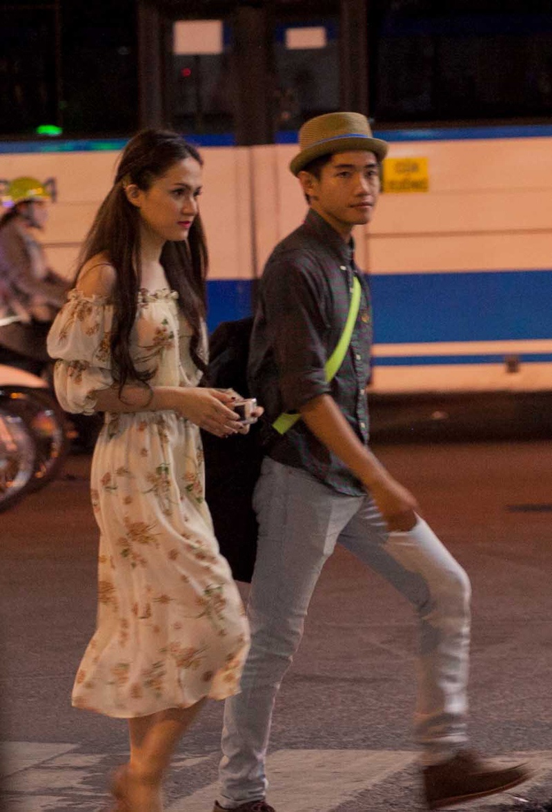 | Khuya ngày hôm qua, người đẹp chuyển giới bị bắt gặp đi bộ trên phố cùng với hot boy So you think you can dance. Nữ ca sĩ để mặt mộc, chỉ tô son nhẹ và buông tóc, mặc váy nữ tính, theo đúng phong cách Hương Giang đang hướng tới.
