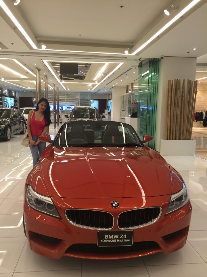 Cô còn tranh thủ ghé qua một showroom ô tô tại thủ đô Bangkok -Thái Lan để ngắm nghía những mẫu mã mới.