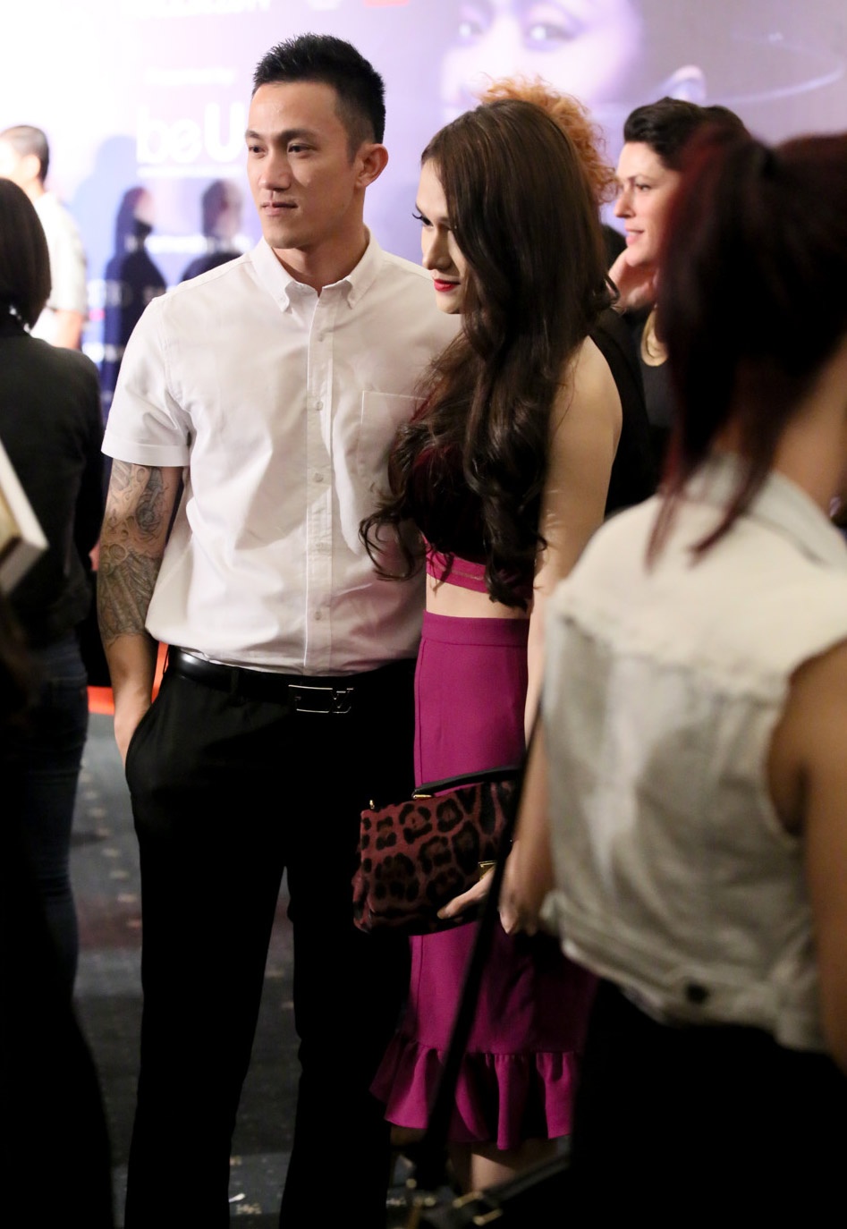 | Tối 5/12, nữ ca sĩ Sen It On được bạn trai Việt kiều đưa đi xem thời trang của các nhà thiết kế Việt. Trong khi Criss Lai trẻ trung, lịch lãm với áo sơ mi, quần tây thì Hương Giang lại diện áo crop top, chân váy khoe vẻ gợi cảm. |