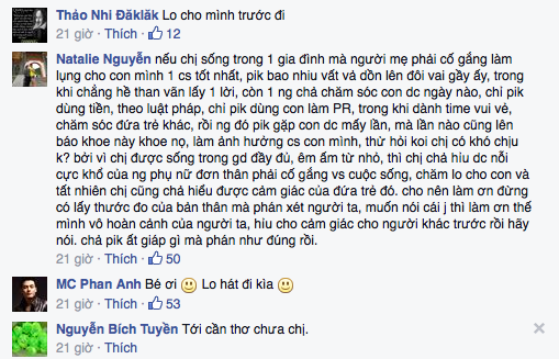 Hương Tràm khẳng định, nếu người mẹ không vì sự giận hờn chưa nguôi sau chia tay với chồng thì chắc chị đã có cách giải quyết khác. Với một người chồng đầy trách nhiệm như thế, thiết nghĩ chị hãy nghe máy khi anh gọi, cho con nghe giọng cha từng ngày. Thậm chí là thường xuyên cho con nhìn mặt cha, xem cha hát và thường xuyên kể với con về người cha ở Việt Nam, cho bé một ý thức về một chủ thể tuy ở xa nhưng quan trọng và gần gũi, bởi tình cảm thiêng liêng ấy, nên có và phải có cho tương lai của bé.