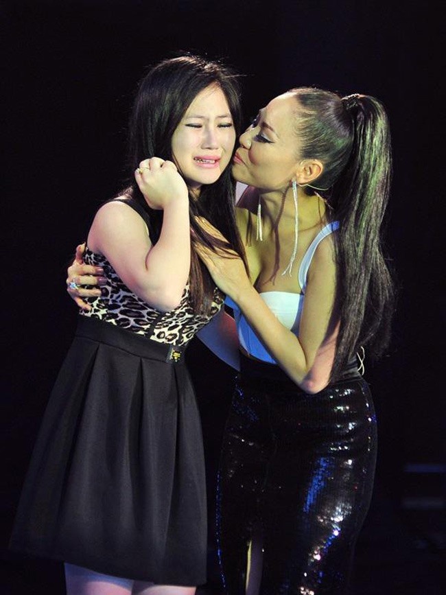 | Cái ôm thắm thiết của Thu Minh và Hương Tràm trong ngày chiến thắng khiến người hâm mộ cảm nhận được tình cảm thầy trò thân thiết. |