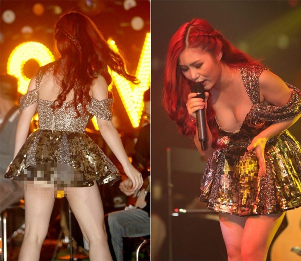 | Ăn mặc phản cảm: Scandal bẽ bàng mới đây nhất của Hương Tràm chính là việc ăn mặc phản cảm, hở hang tới mức gây sốc khi đi hát tại một quán bar ở Hà Nội. Bộ trang phục ngắn cũn cỡn, xuyên thấu màu đen, có những khoảng hở ở lưng, hông... chưa khiến khán giả nhức mắt bằng việc Hương Tràm hồn nhiên để lộ nội y trắng một cách thiếu ý tứ. |