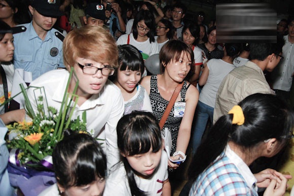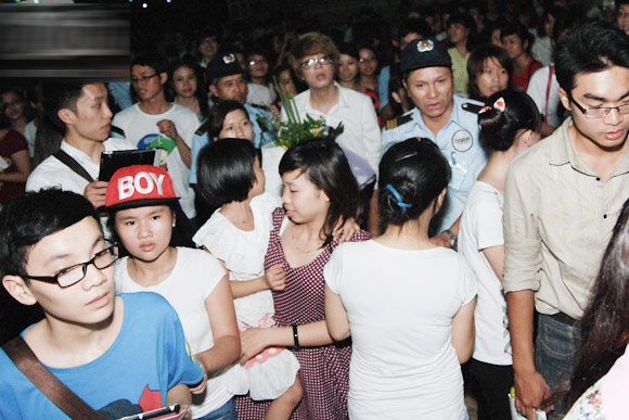 | Anh chàng một mình len lỏi giữa đám đông khán giả. |