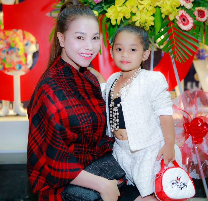 | Trà Ngọc Hằng thích thú tạo dáng cùng tín đồ thời trang nhí. |