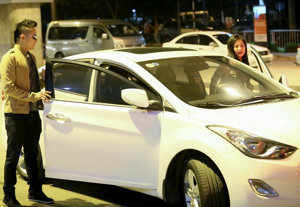 Nữ ca sĩ để mặt mộc, lái xe riêng ra sân bay đón Cao Thái Sơn vừa đi Mỹ biểu diễn trở về nước.