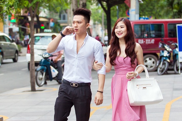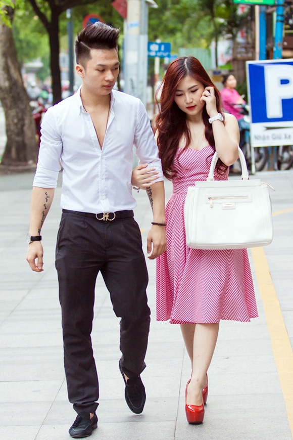 | Cặp đôi mới của showbiz Việt còn tình tứ nắm tay nhau dạo phố. |