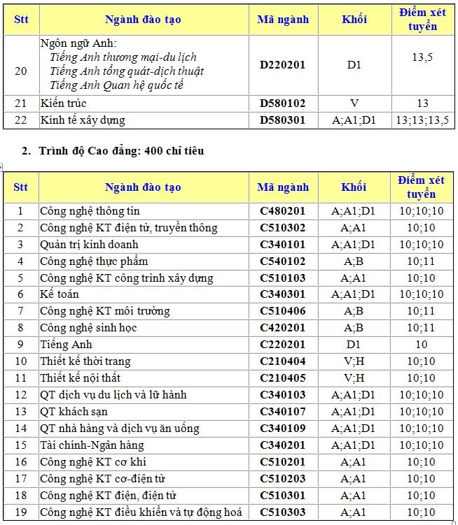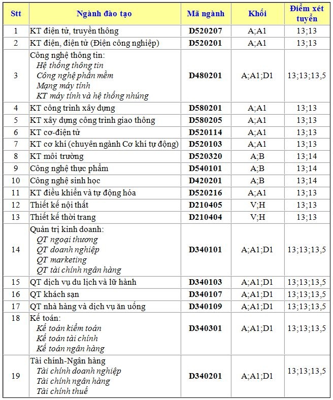 - Hồ sơ xét tuyển gồm: bản chính giấy chứng nhận kết quả thi tuyển sinh ĐH-CĐ 2013; 1 phong bì (dán tem ghi rõ họ tên, địa chỉ, số điện thoại)