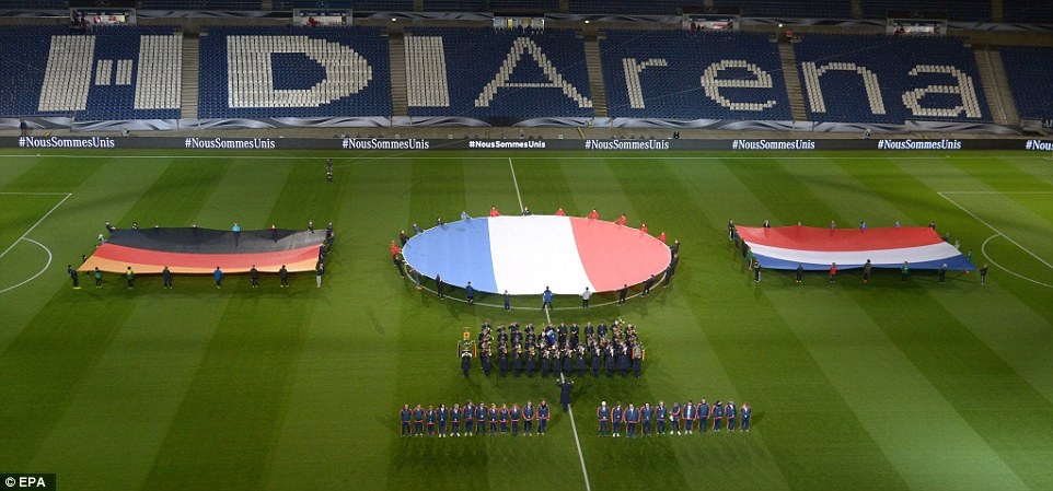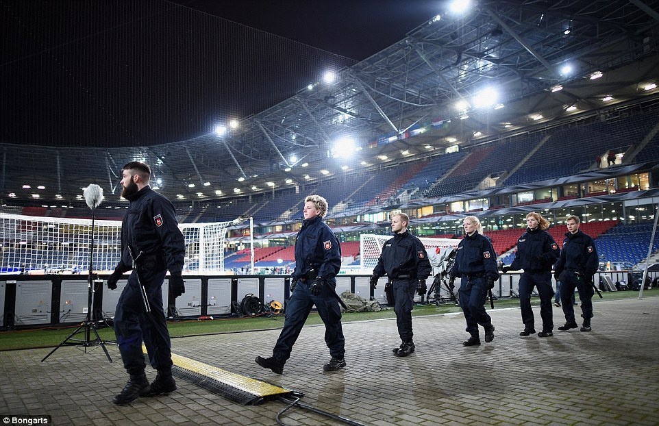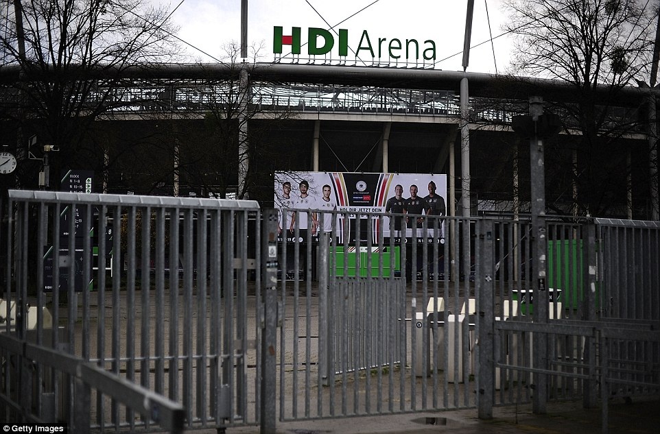 | Sân HDI-Arena được đặt trong tình trạng báo động cao sau khi có tin bị những tay súng của Nhà nước Hồi giáo (IS) tấn công. |
