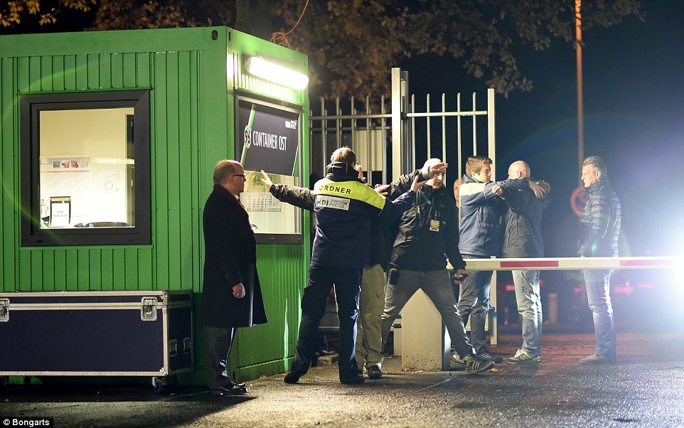 | Cảnh sát cũng phong tỏa sân HDI-Arena sau khi phát hiện một chiếc vali nằm trong sân. |