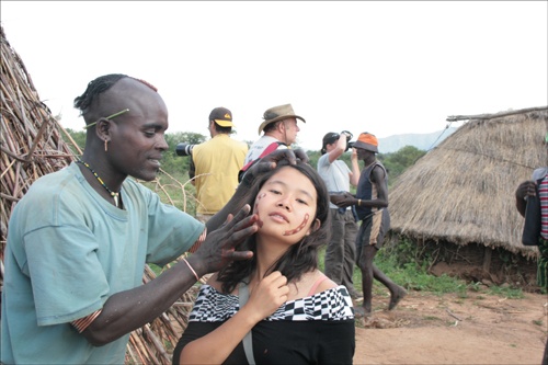 | Huyền Chip được người dân Châu Phi vẽ mặt. |