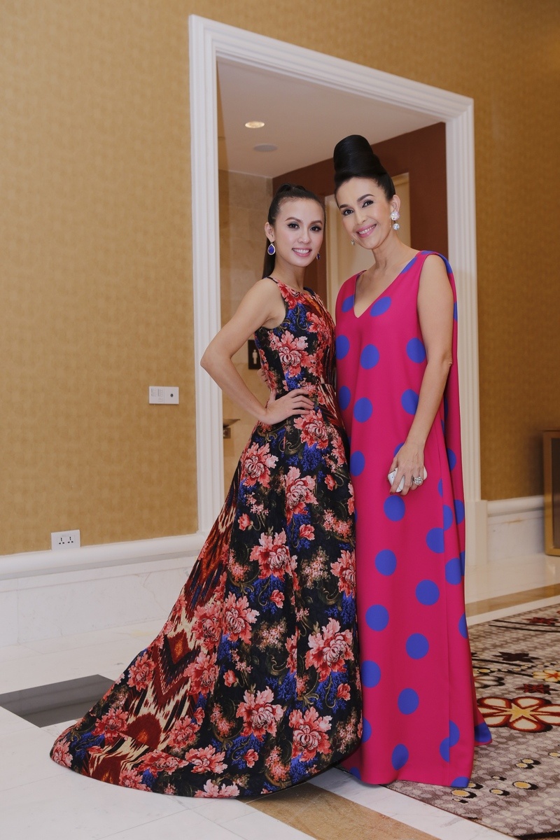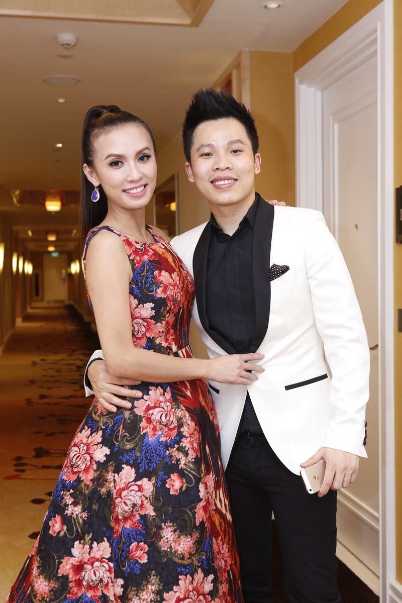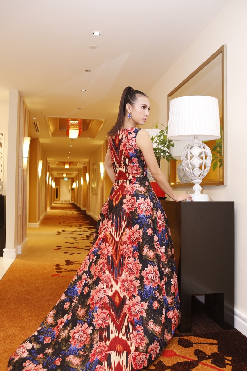 Không chỉ tỏa sáng với thiết kế hàng hiệu của Oscar de la Renta, nữ MC hải ngoại còn thể hiện được sự tự tin, thoải mái hơn khi cùng Hoa hậu Việt Nam 2010 "cầm trịch" chương trình "Ngôi sao người mẫu châu Á".