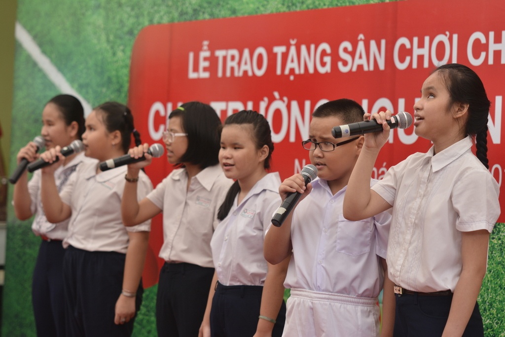 | Đại diện của trường Nguyễn Đình Chiểu cũng không quên gửi lời cảm ơn đến những nhà tài trợ bởi đã giúp cho những trẻ em của trường có được sân bóng ngay trong khuôn viên trường. |