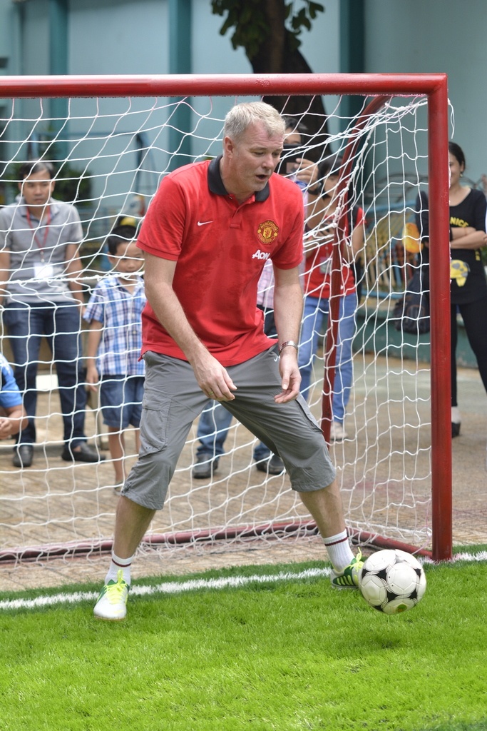 | Huyền thoại của Quỷ đỏ sau đó còn trổ tài làm thủ môn cho các cầu thủ tập sút. |
