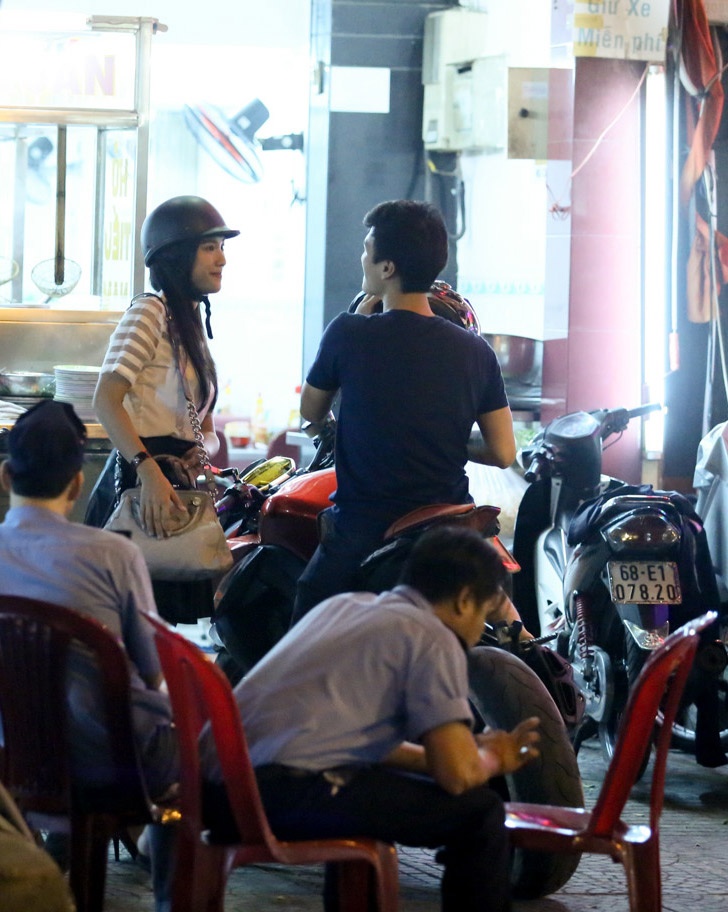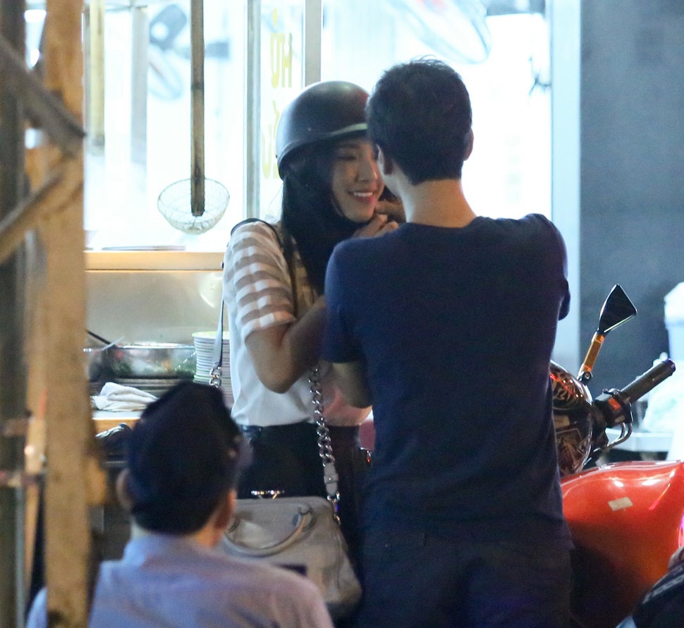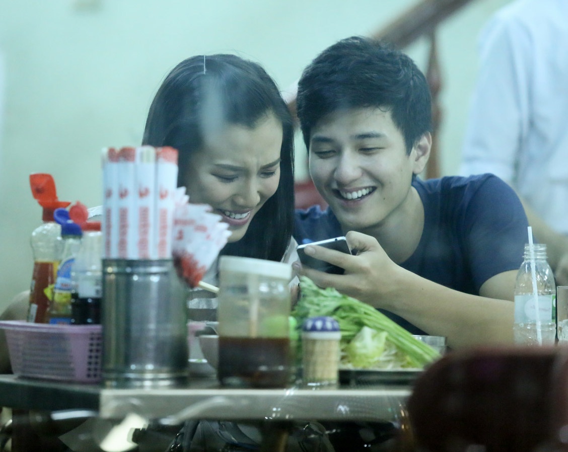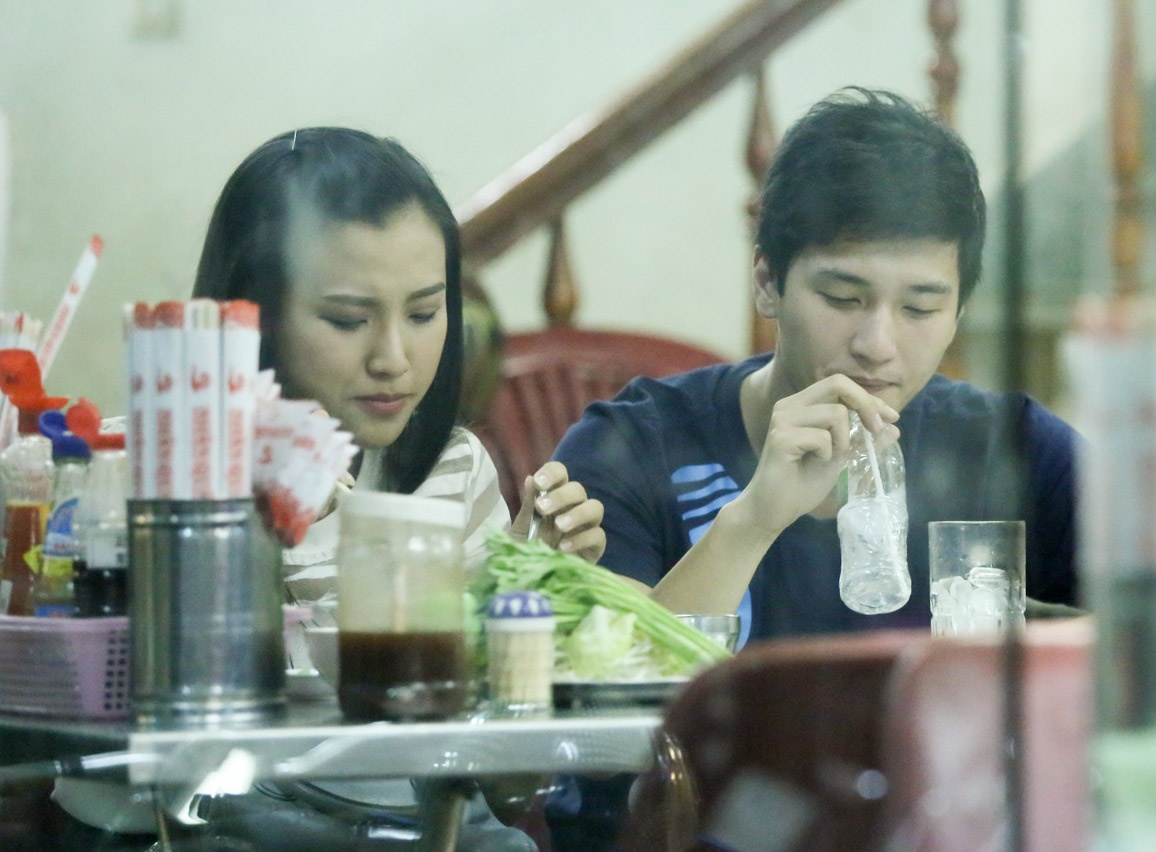 | Cả hai vừa ăn, vừa trò chuyện rất vui vẻ, tình cảm. Huỳnh Anh đang bận rộn với vai diễn mới và học thêm về công việc đạo diễn phim ngắn, MV nhưng buổi tối, anh luôn dành thời gian chở bạn gái đi chơi. Sở thích của họ là lê la phố phường, ăn những hàng quán vỉa hè. |