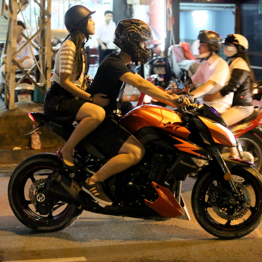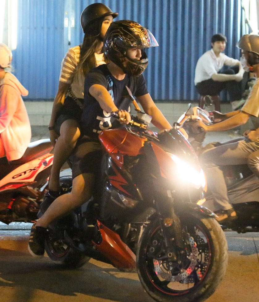 | Huỳnh Anh chở bạn gái mới đi chơi tối bằng chiếc xe Kawasaki Z1000 có giá gần 500 triệu. Nam diễn viên cho biết, anh thích đi xe phân khối lớn và luôn dành dụm tiền để đáp ứng sở thích của mình. |