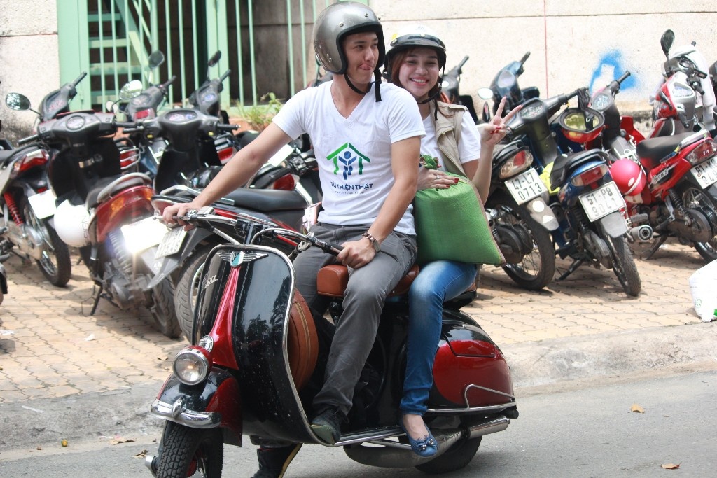 Cả hai người quyết định đi trao quà và thăm hỏi những hoàn cảnh khó khăn bằng xe máy cho tiện. |