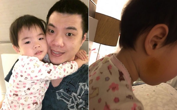 | Hoàng Nghị Thanh tung ảnh mặt bầm tím của con gái. Anh này khẳng định con gái bị đánh khi ở với mẹ. Ảnh: Sina. |