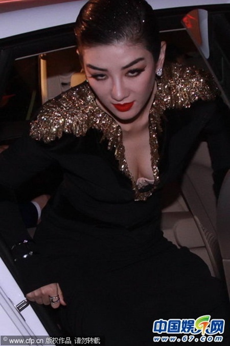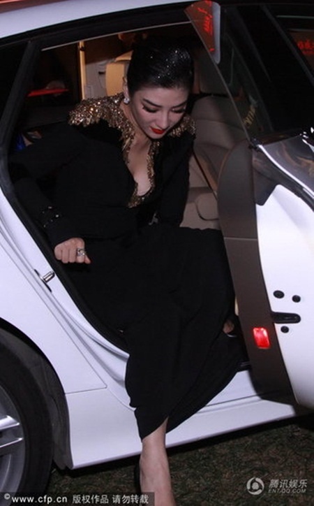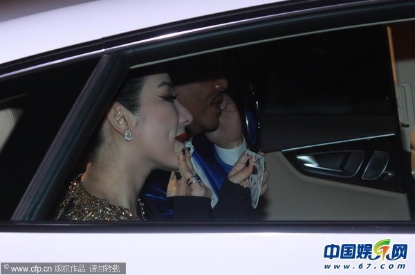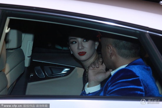 Nữ diễn viên tranh thủ trang điểm trên xe và tránh các câu hỏi liên quan đến những tranh cãi với chồng trong thời gian qua.