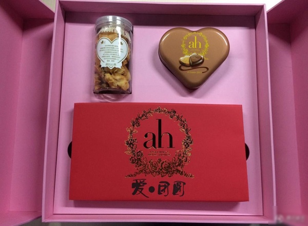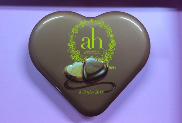 Đôi vợ chồng tặng hộp chocolate to, đặt ảnh Huỳnh Hiểu Minh và Angelababy trong trang phục truyền thống lồng vào trong quà.