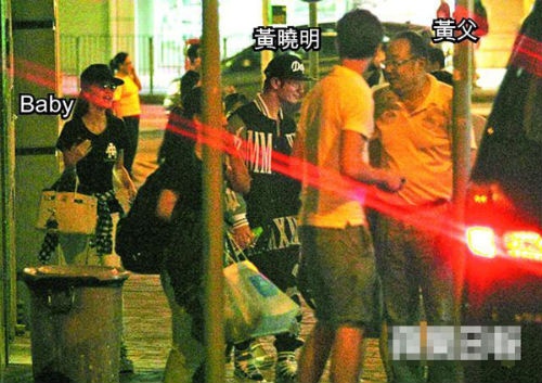 Gần đây, báo giới bất ngờ chộp được cảnh Huỳnh Hiểu Minh dẫn Angelababy đến gặp gỡ bố mẹ ruột của mình tại Hong Kong. Khoảng 5h30 chiều, bố mẹ của nam tài tử họ Huỳnh lưu lại tại khách sạn Harbour Plaza Metropolis để nghỉ ngơi. Đến 7h, Hiểu Minh cùng gia đình và bạn gái đi ăn tối tại một nhà hàng Nhật Bản.