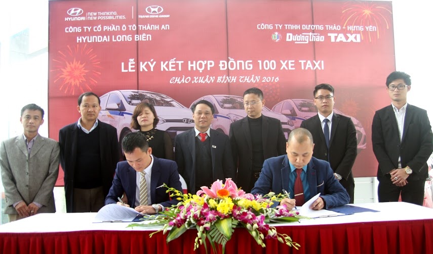 Hợp đồng đầu tiên có số lượng 500 chiếc Grand i10 ký với hãng taxi Thành Công. Lần thứ 2, đại lý có doanh số bán lớn nhất hệ thống Hyundai này tiếp tục ký hợp đồng 100 chiếc Grand i10 với hãng taxi Dương Thảo (Hưng Yên), nâng tổng số xe đã ký kết lên thành 600 chiếc.