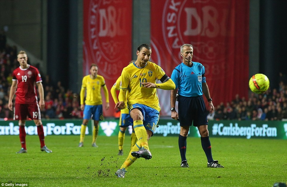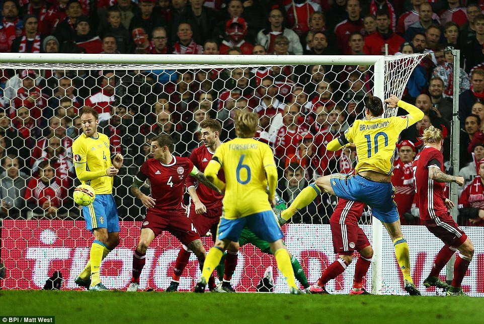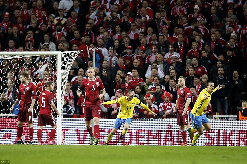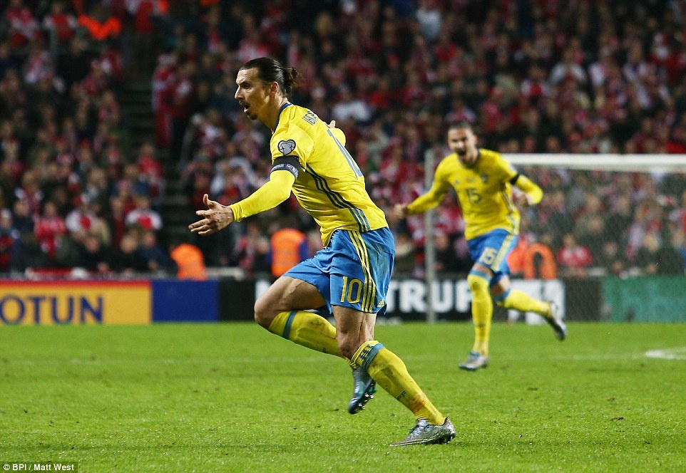 Zlatan Ibrahimovic thi đấu chói sáng ở trận play-off lượt về diễn ra trên sân của Đan Mạch lúc 2h45 ngày 18/11. Chân sút thuộc biên chế PSG lập cú đúp giúp Thụy Điển vươn lên dẫn trước 2-0 ở phút 19 và 76.