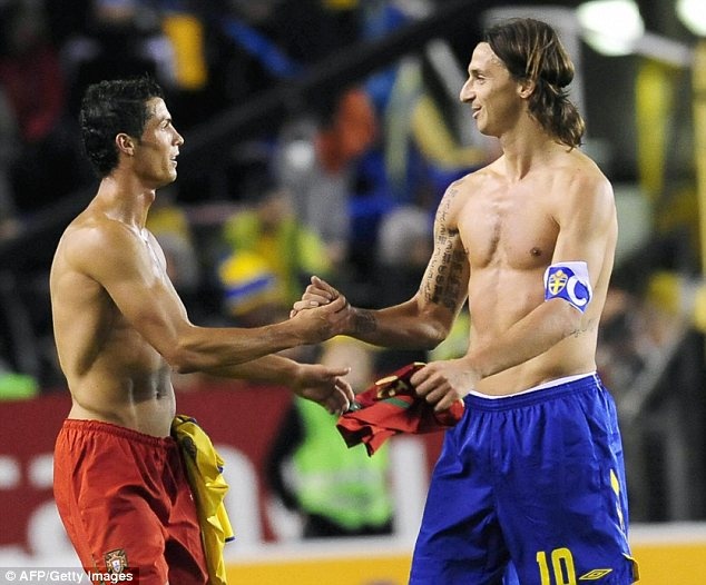 | Ronaldo - Ibra bằng mặt nhưng không bằng lòng. Ảnh Daily Mail |