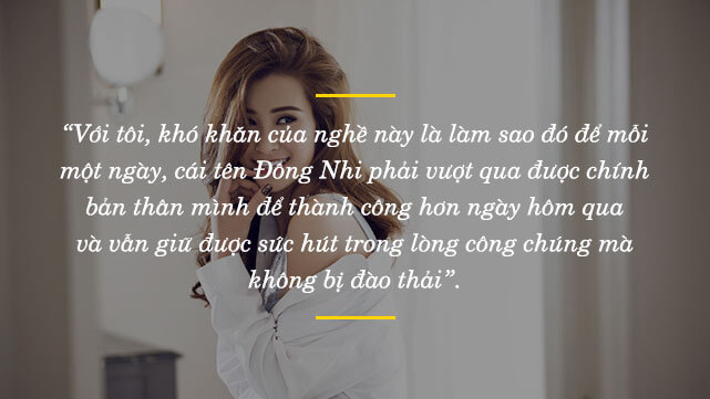 Không bó buộc và thoải mái sáng tạo là cách Đông Nhi đi đường dài trong âm nhạc. Khi nhạc teen thịnh hành, Đông Nhi luôn nằm trong top ca sĩ được yêu thích. Khi EDM lên ngôi, cô được coi là ngôi sao mới, thậm chí nhiều người kỳ vọng cô nối tiếp những diva đàn chị.