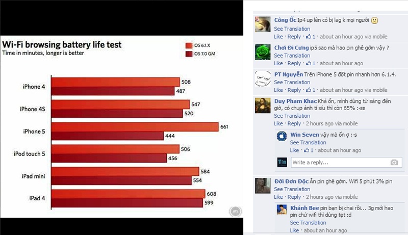 Ngay sau khi Apple cho phép người dùng trên toàn thế giới tải về hệ điều hành iOS 7, người dùng iPhone và iPad tại Việt Nam cũng đã tiến hành nâng cấp thiết bị của mình. Ngoài những cảm nhận tích cực về giao diện mới, khá nhiều ý kiến cho biết thiết bị của họ trở nên chậm chạm hơn và hao pin hơn sau khi nâng cấp.