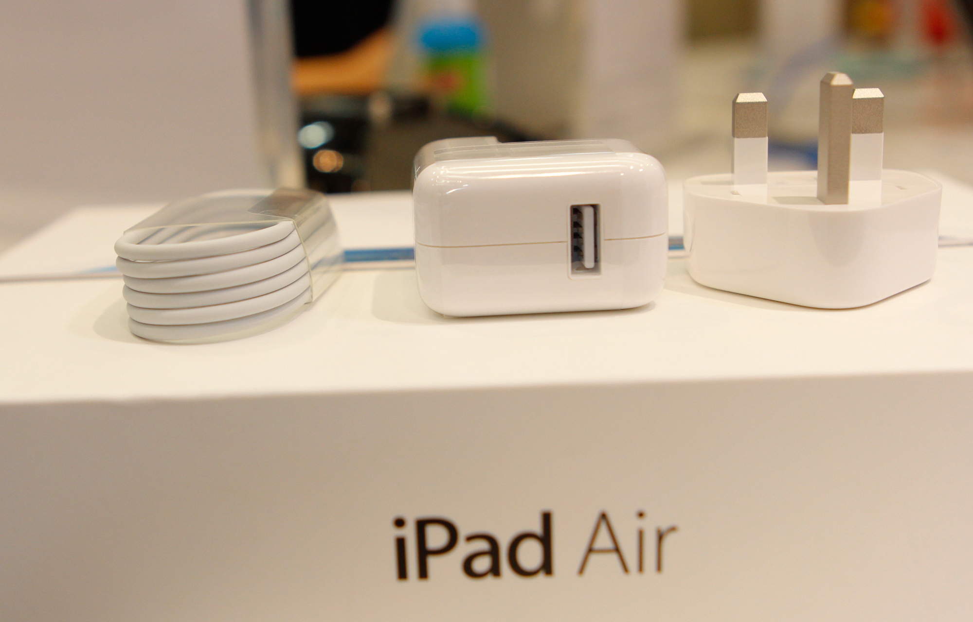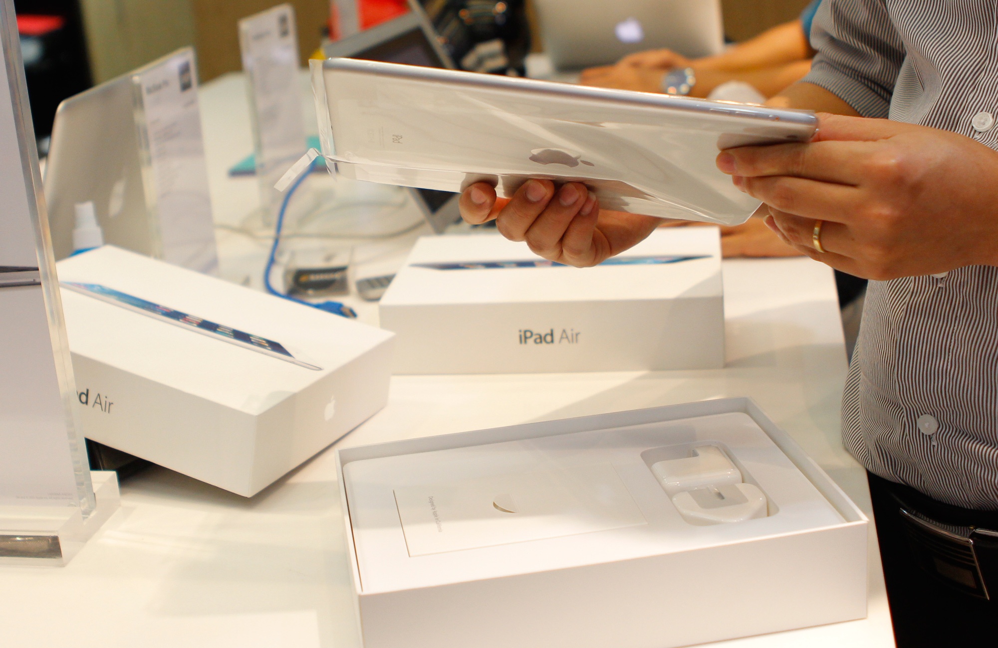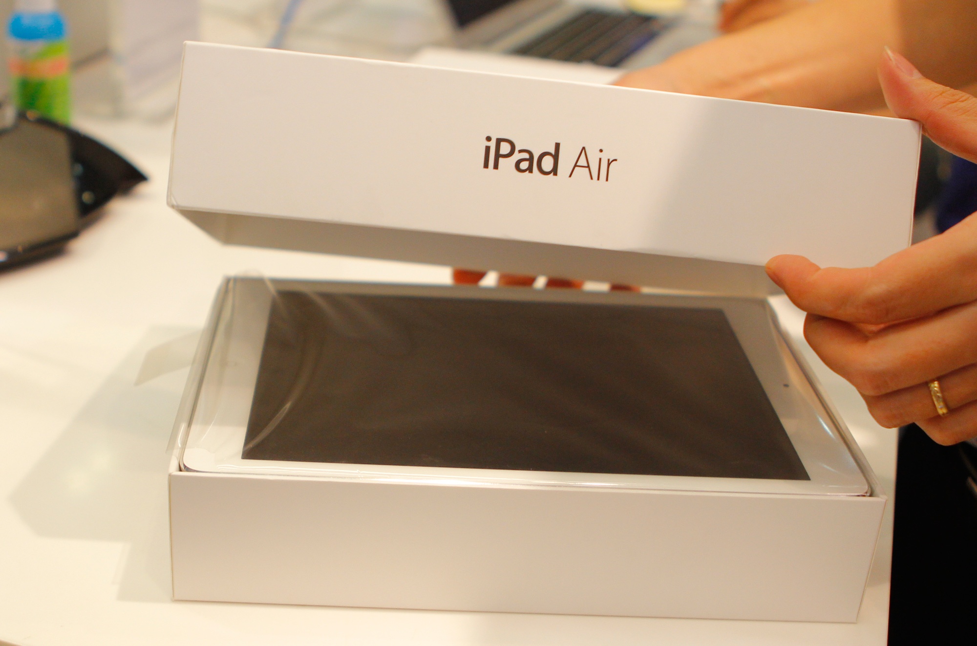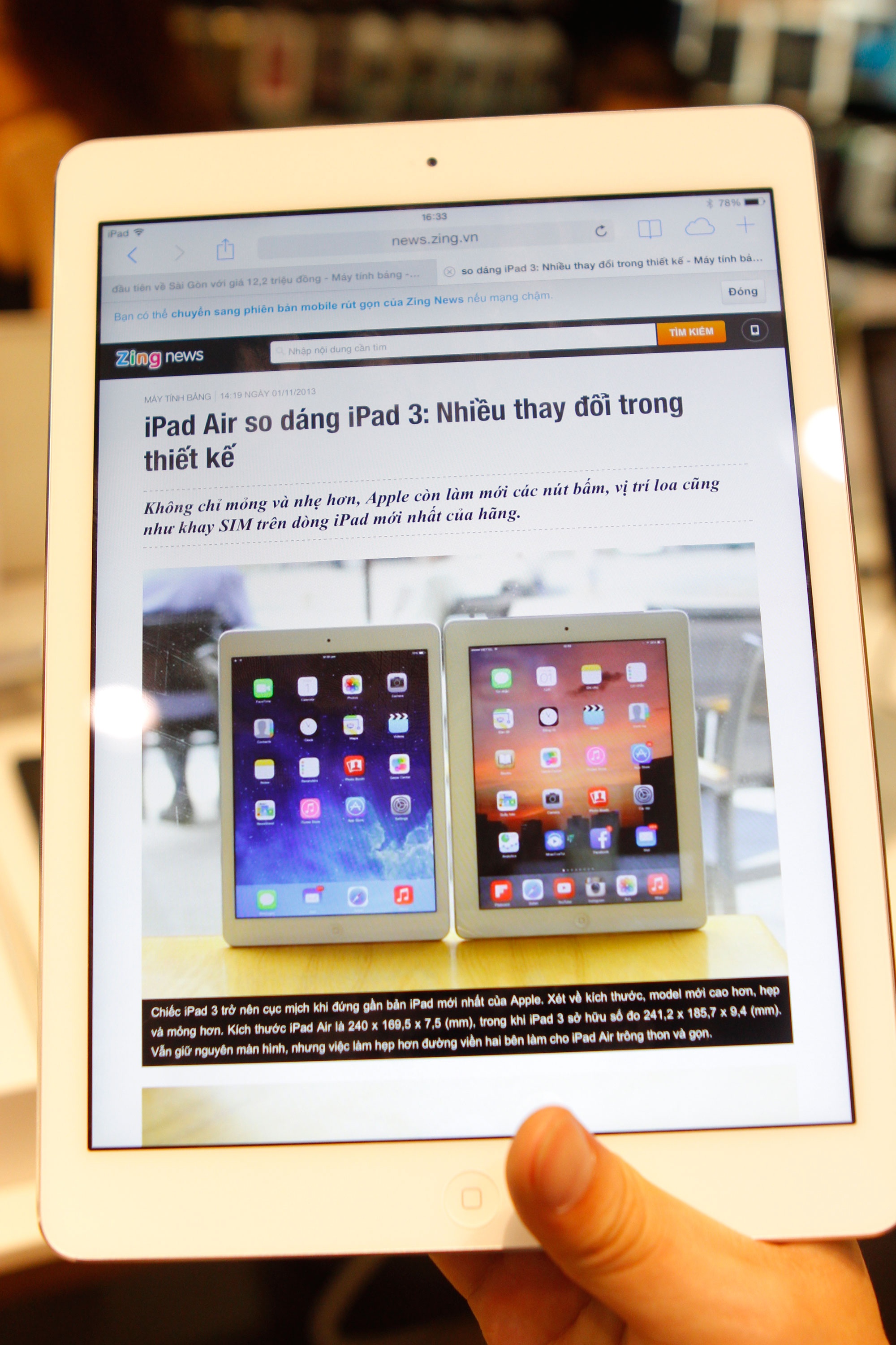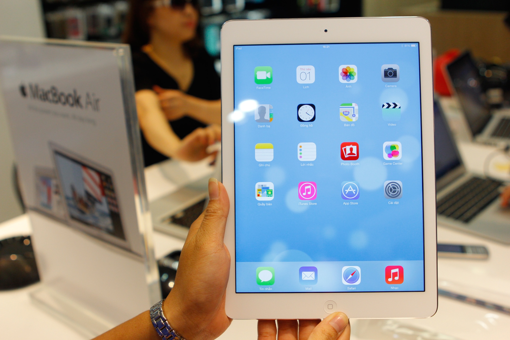 Chiều 1/11, những chiếc iPad Air đã có mặt tại một số cửa hàng kinh doanh sản phẩm Apple ở Hà Nội. Trong ảnh là chiếc iPad Air Wi-Fi 16GB màu trắng.
