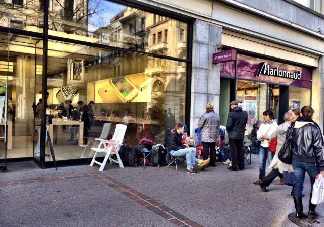 Tại Zurich (Thụy Sĩ), số lượng người xếp hàng trước chờ mua iPad Air rất thưa thớt.