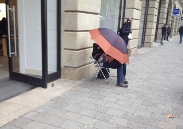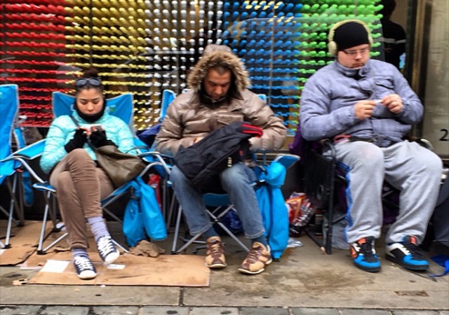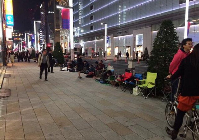 Tại Ginza (Tokyo, Nhật Bản), một số người đã chuẩn bị ghế mềm, chăn để xếp hàng qua đêm chờ mua iPad Air. Tuyệt nhiên không có cảnh chen lấn hay ồn ào, xô bồ tại địa điểm này.