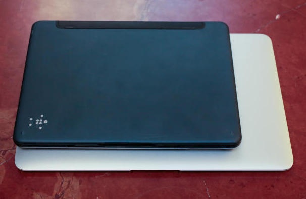 Tất nhiên, khi trang bị thêm keyboard hoặc case bảo vệ tích hợp keyboard cho iPad Air, khoảng cách về trọng lượng giữa iPad Air và MacBook Air 2013 đã giảm đáng kể. Case tích hợp bàn phím Belkin Qode đã khiến iPad Air tăng từ 469 gram lên gần gấp đôi. Dù vậy, một chiếc iPad nhỏ gọn vẫn là lựa chọn phù hợp hơn cả khi bạn đang xoay sở trong những không gian hẹp như bàn gấp trên máy bay hay xe điện ngầm đông đúc.