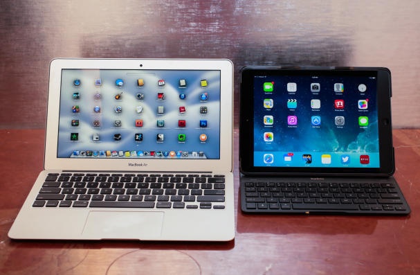 Câu hỏi đặt ra là, với màn hình cảm ứng lớn và bộ xử lý mạnh mẽ, liệu iPad thế hệ mới có đủ khả năng thay thế chiếc laptop 11 inch của Apple? Trong một thử nghiệm so sánh hai sản phẩm, chuyên trang công nghệ Cnet đã đặt MacBook Air 11 inch bên cạnh một chiếc iPad Air sử dụng case bảo vệ có trang bị bàn phím Belkin Qode.
