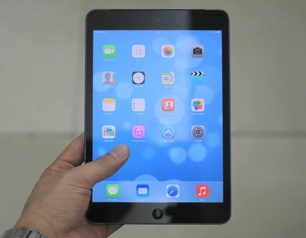| Cảm giác cẩm iPad Mini 2 trên tay không khác biệt nhiều với thế hệ đầu về trọng lượng, kích thước. |