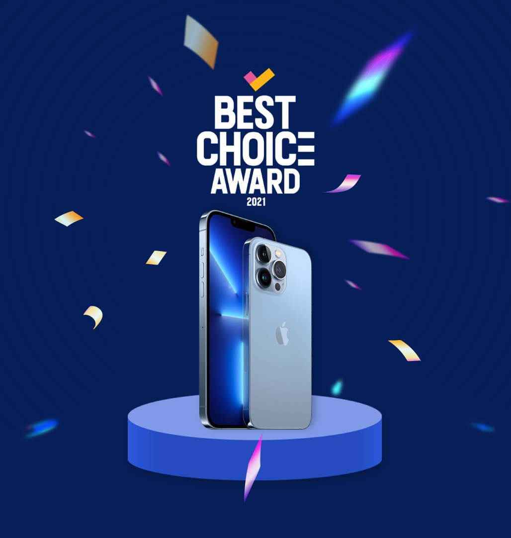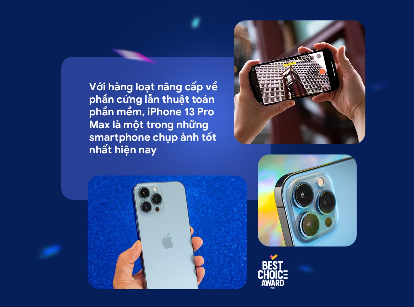Với số phiếu bình chọn áp đảo, iPhone 13 Pro Max trở thành smartphone được yêu thích nhất giải Best Choice Award 2021.