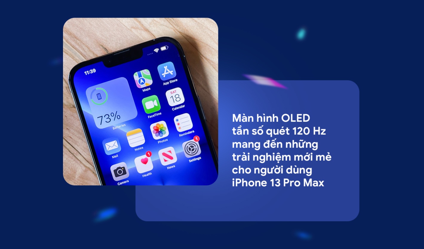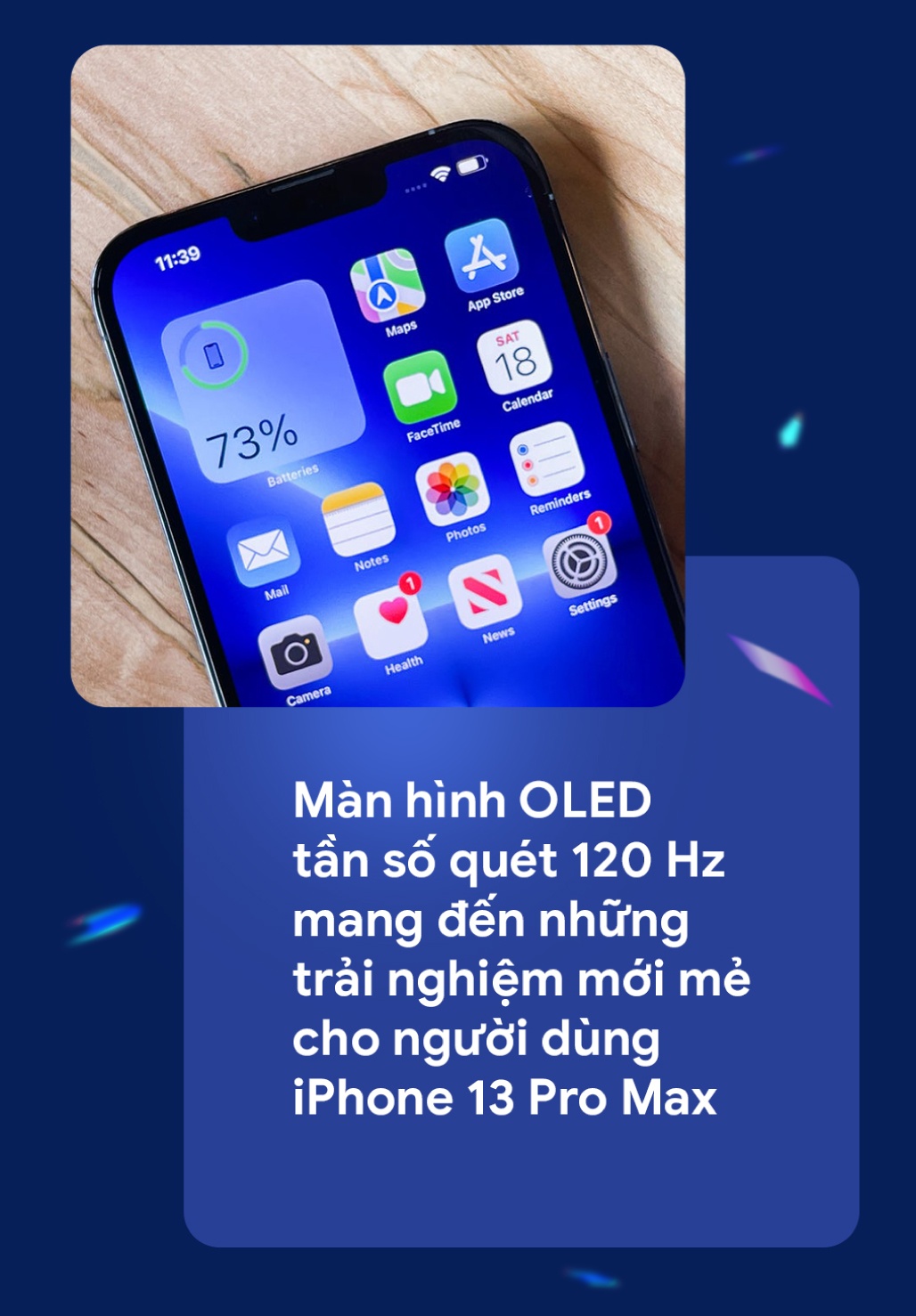 Sau vài năm để các flagship Android thử nghiệm thị trường, Apple đã mang tần số quét 120 Hz lên màn hình của iPhone 13 Pro Max. Màn hình này tạo ra khác biệt ngay ở những trải nghiệm thiết lập đầu tiên hay vuốt để mở khóa.