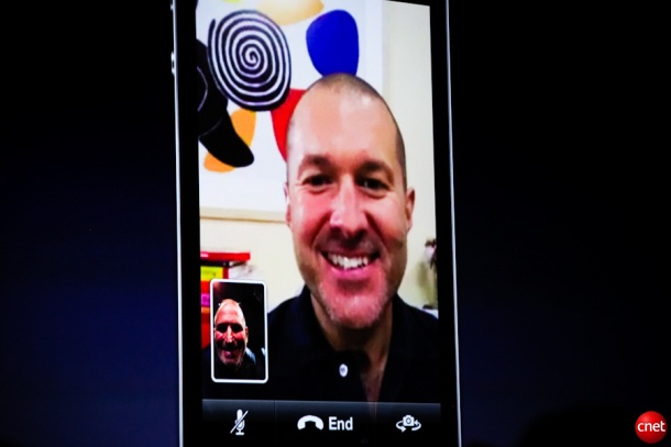 Steve Jobs và nhà thiết kế Jony Ive thực hiện cuộc gọi FaceTime ngay tại sự kiện ra mắt iPhone 4.