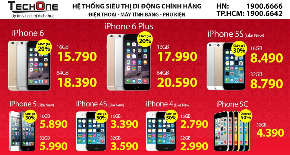 - iPhone 6: 15,7 triệu đồng (giá cũ: 17,9 triệu đồng)