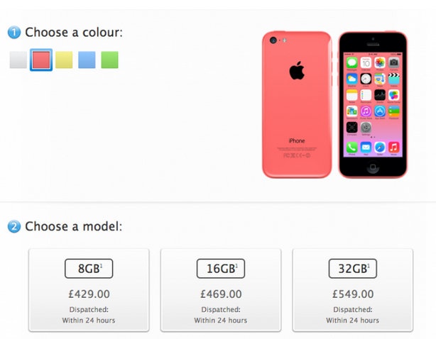 | Giá bán iPhone 5C bản 8GB đã được công bố trên Apple Store. |
