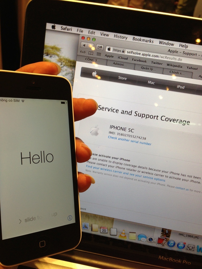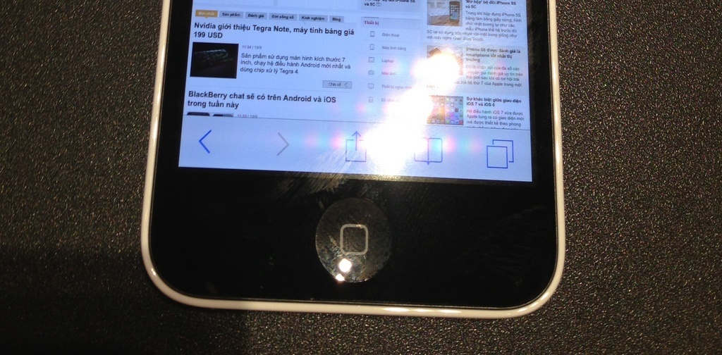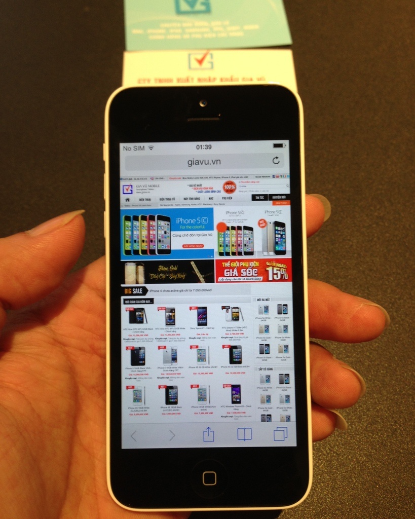 | Đây là hình ảnh chiếc iPhone 5C đầu tiên, máy đã cắm sim trên mạng Mobifone và sử dụng được. Theo anh Vũ, cửa hàng Gia Vũ tại Hà Nội, sản phẩm có xuất xứ từ thị trường Trung Quốc, một trong những nơi bán sớm iPhone 5C. |