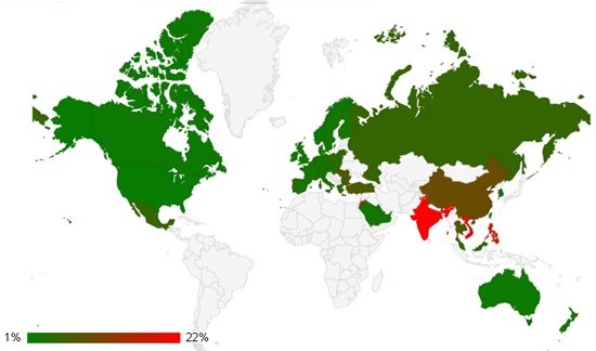| Biểu đồ thể hiện sự tương quan giữa giá iPhone 5S và GDP bình quân đầu người tính theo ngang giá sức mua trên toàn thế giới. |